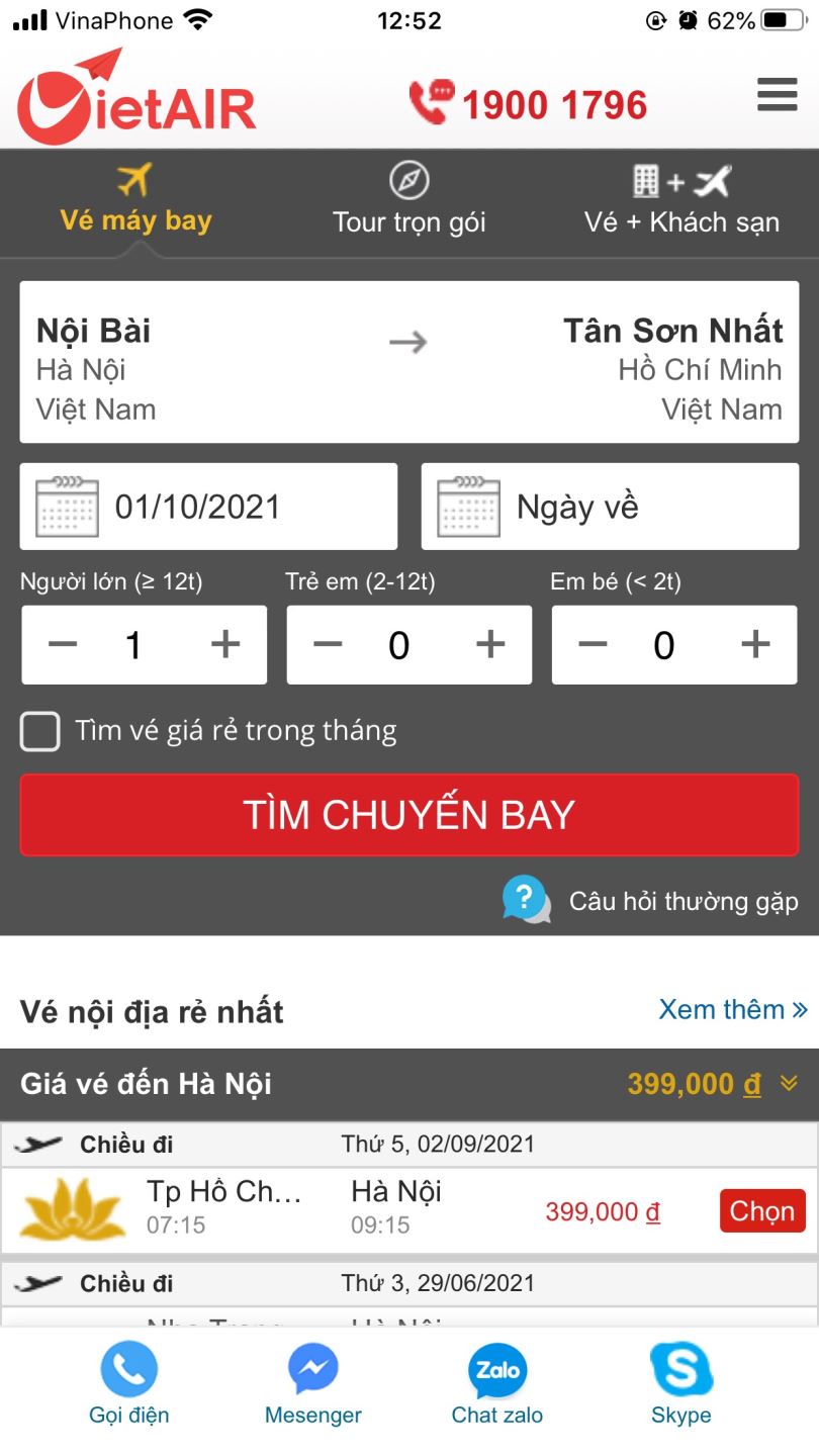 Bạn có thể vào tìm kiếm chuyến bay và tiến hành đặt vé (Như hình 04)