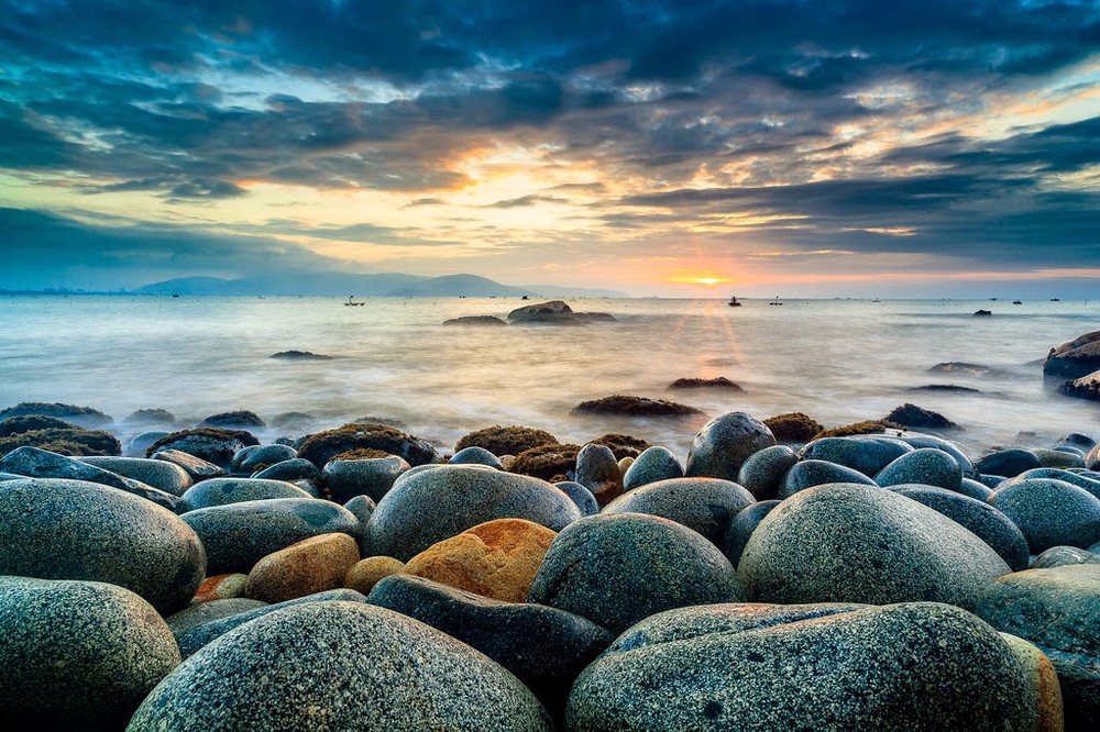 Bãi biển độc đáo bởi những viên đá to nhỏ với nhiều hình dáng khác nhau, trơn nhẵn như trứng chim khổng lồ được đặt cạnh nhau và chất chồng lên tạo nên một nét đẹp đầy hoang sơ. Bãi biển đẹp nhất vào hoàng hôn hoặc khi bình minh làn sương còn giăng mờ mờ.