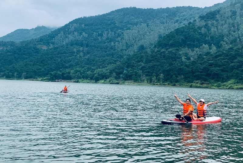 Chèo thuyền Kayak hoặc SUP: Bạn có thể tự mình khám phá vẻ đẹp của hồ nước và hòa mình vào thiên nhiên là cảm giác tuyệt vời khi bạn chèo thuyền kayak hoặc SUP trên Hồ Đồng Đò
