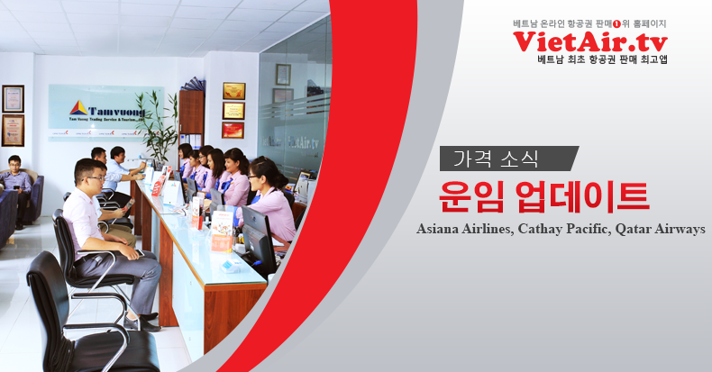 전세계의 유명 항공사의 정식적인 에이젠트- Vietair. 이제는 고객님이 많은 할인 이벤트로 국제 항공권을 저렴하게 구매할 수 있습니다.오늘은 Asiana Airlines, Cathay Pacific 또는 Qatar Airways 특별 가격을 고객님께 안내드리겠습니다,