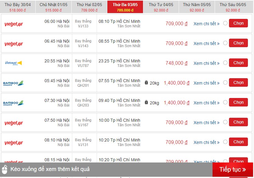 Hệ thống cũng cho phép bạn sắp xếp các chuyến bay theo giá vé, theo hãng và theo giờ bay để việc chọn lựa dễ dàng hơn.