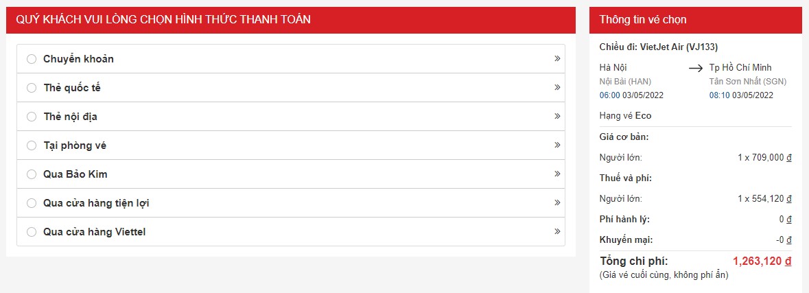 Tại VietAIR, bạn có thể thanh toán vé máy bay của mình qua 6 kênh: